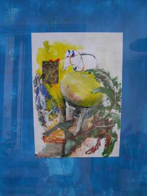 >>> Druckserie " NACHGELEGT " auf blauem Untergrund <<<