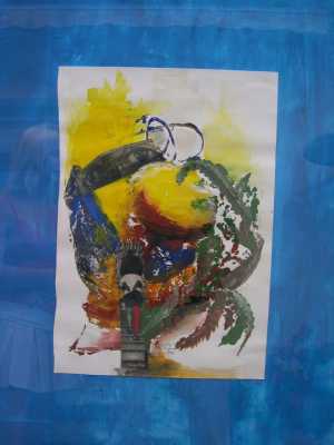 >>> Druckserie " NACHGELEGT " auf blauem Untergrund <<<