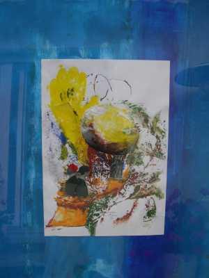 >>> Druckserie " NACHGELEGT " auf blauem Untergrund <<<
